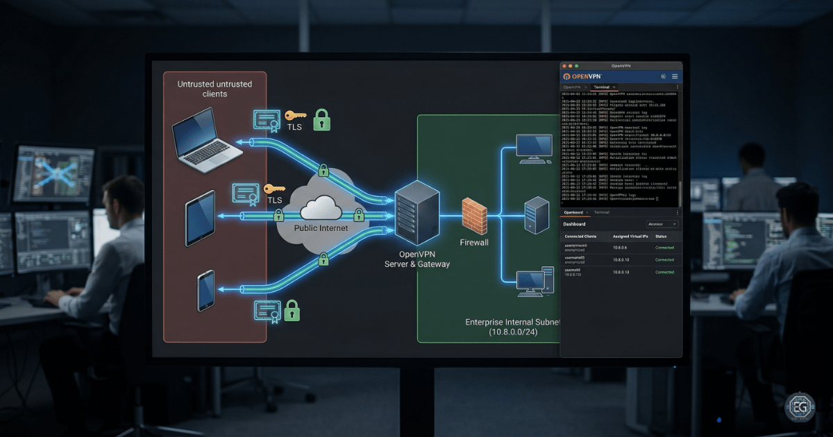 Deployment and validation of an OpenVPN remote access solution to provide secure encrypted tunneling for remote clients over untrusted networks.